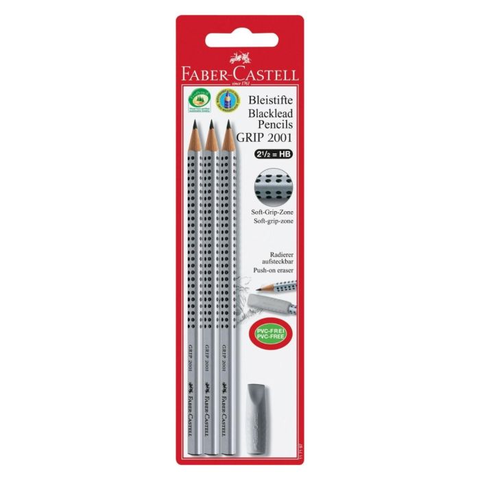 Faber-Castell Pencil Grip 2001 Pack (3) + Eraser 117197 HB