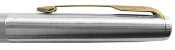 A simple, and minimalistic design. The Parker Jotter Steel Fountain Pen with gold trim is ideal for an office environment. It features a black grip section with a body and lid made out of brushed steel and classic arrow pocket clip in gold. To refill add Parker ink cartridges or for more freedom add one of the many available ink converters such as the Parker deluxe or Parker classic combined with their bottled inks such as the Parker Quink Inks in Washable Blue, Permanent Blue, Blue/Black or Black.